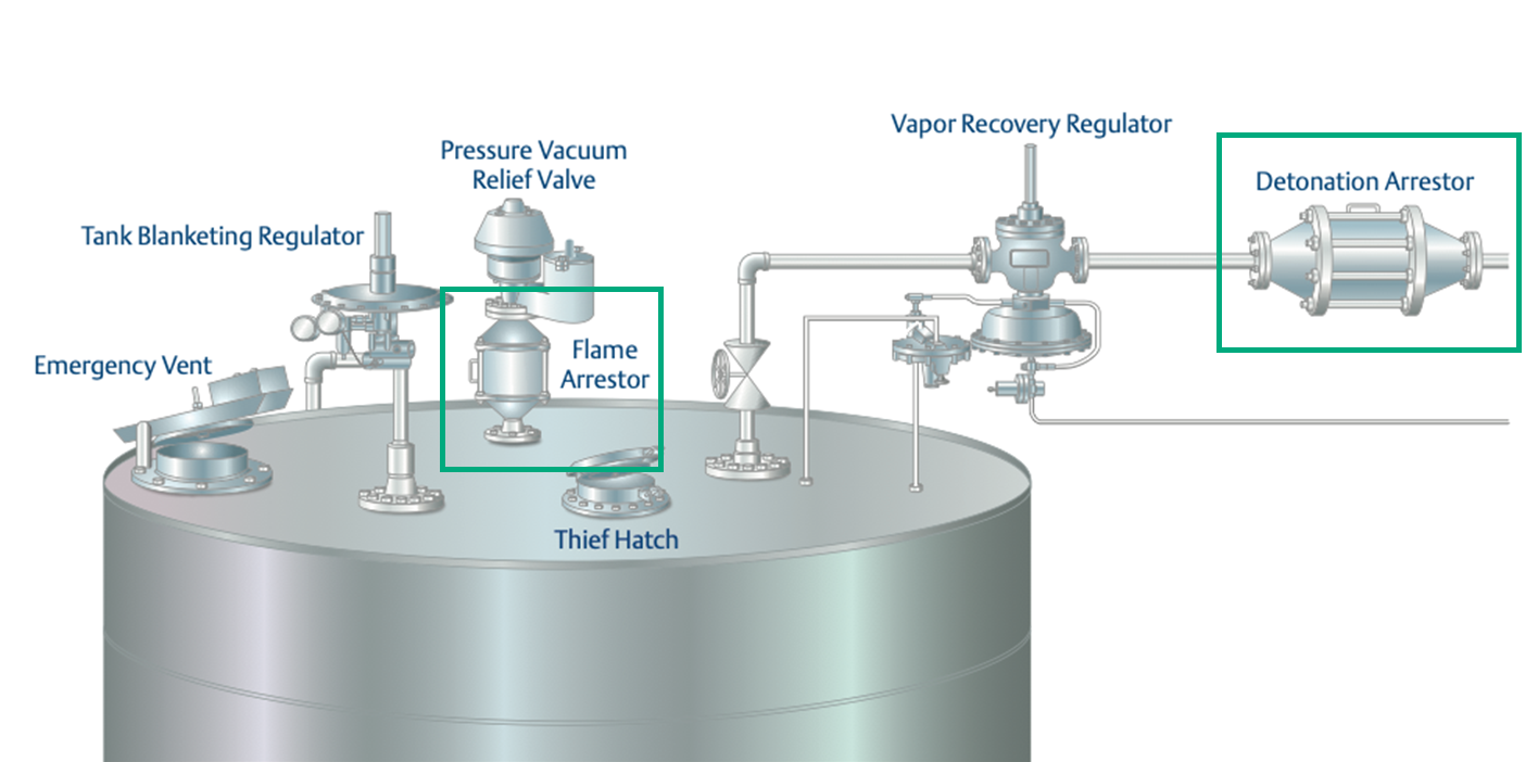 Emerson offers a wide range of arrester solutions for all installations and process gases. Remote temperature and pressure monitoring available to know when flame events take place.