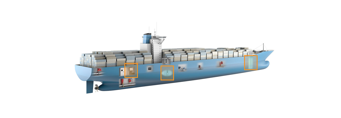 The tendency in the ship design is that big gets bigger with TEUs increasing. To ensure profitable transport many ship constructions focus on increasing cargo space, which gives minimal space for equipment. Your need for compact and flexible solutions makes Emerson’s innovative marine systems your first choice..